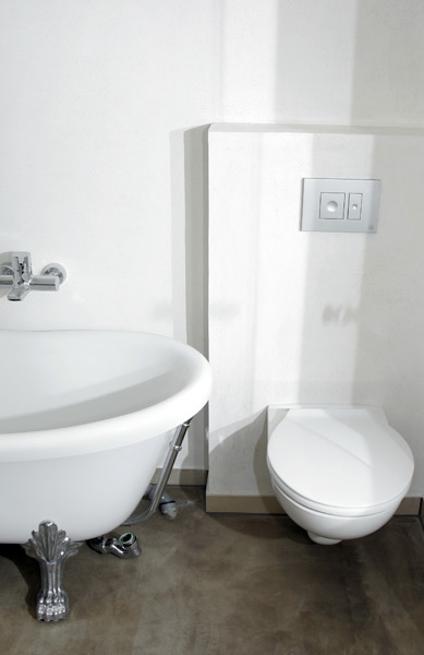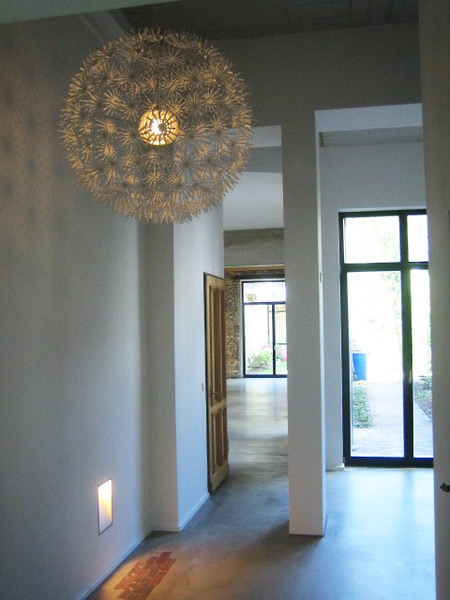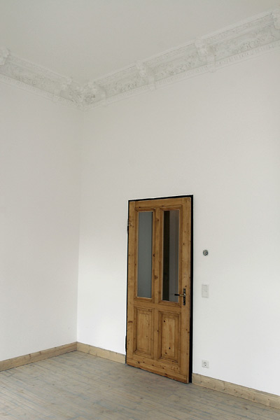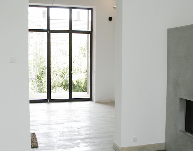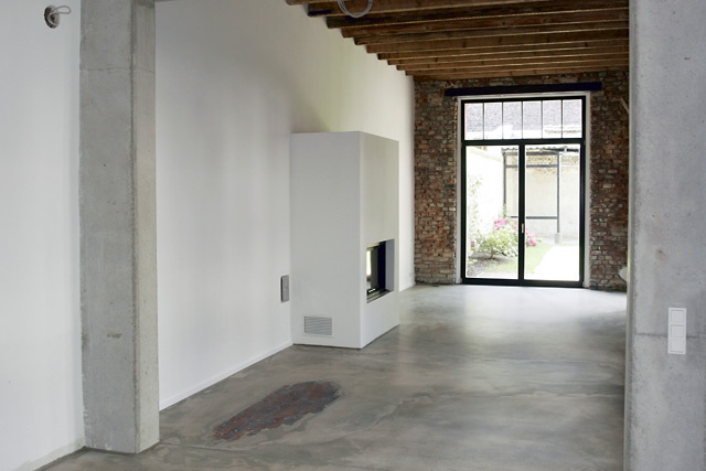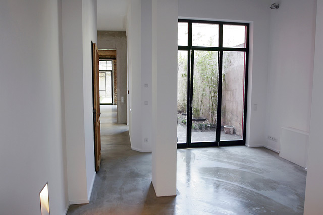 Die Betondecken erhalten den alten Dielenbodenbelag. Die Hauseingangstür