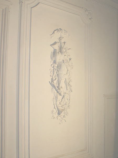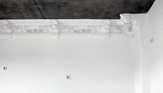 Der im Wohnzimmer vorhandene repräsentative Stuck wird restauriert