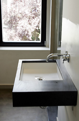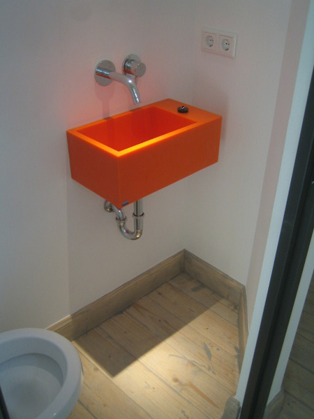 Das Waschbecken mit Nanotechnologie und die Dusche werden im Spritzbereich