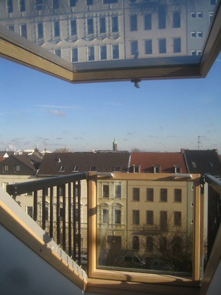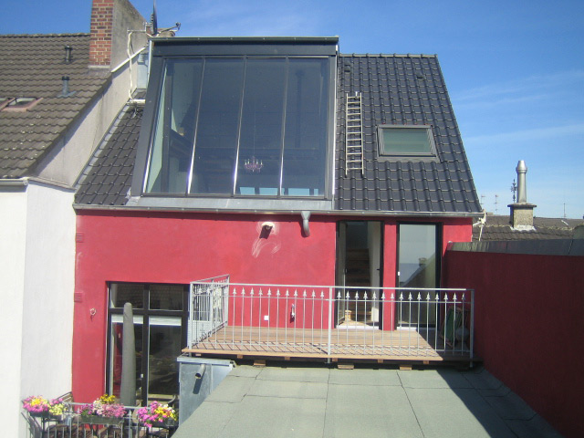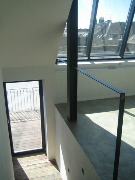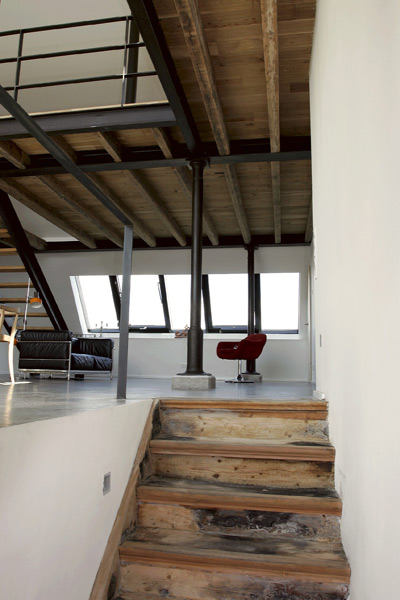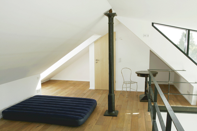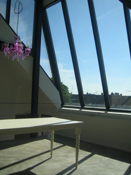 4 m hohe Atelierfenster in Westausrichtung geben dem Dachgeschoss einen
