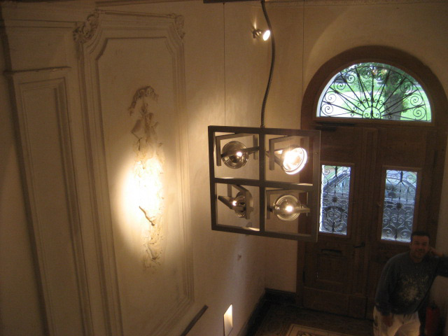 die vorhandenen Stuckelemente an den Decken und die jeweiligen Treppenpodeste